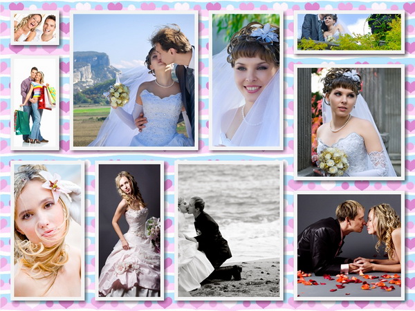 Для того, чтобы ваш подарок действительно понравился молодым, расположите фотографии по временному признаку: от самых ранних до недавно сделанных. Также можно создать коллаж, объединенный одной темой, например, история любви супружеской пары.