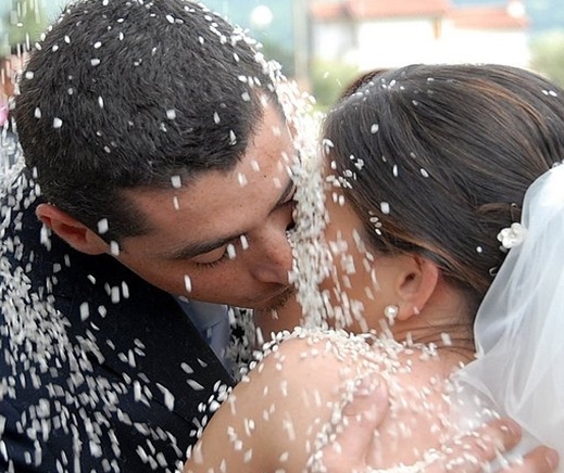 Например, в Китае посыпание молодых белым рисом означает попытка отвлечь злых духов от молодой пары. А в Индии ту же самую трактовку имеет обряд посыпания молодых лепестками роз. Греки и римляне первые придумали кидать конфеты, чтобы подсластить семейную жизнь молодых.