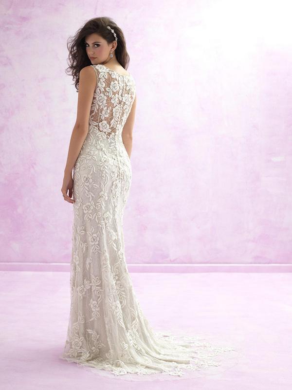 Платье обычно шьется из плотных материалов и покрывается кружевом. Подойдет на любой тип фигуры и украсит любую невесту.