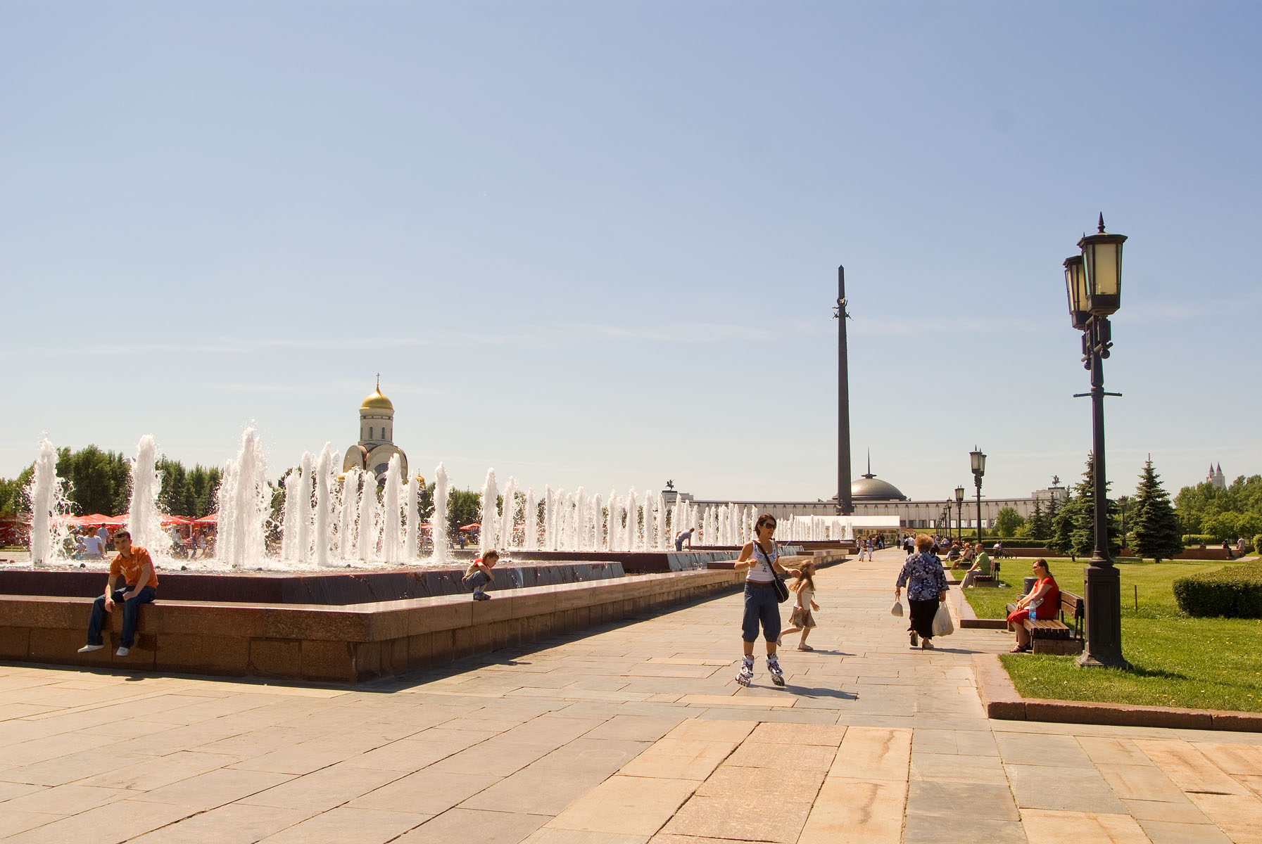 Большое количество фонтанов (1418 струй), пять больших террас, величественное оформление мемориала — все настраивает посетителей на торжественную волну. Молодожены любят это место — здесь открывается красивый вид на Москву и окрестности. Особенно хорош парк весной.