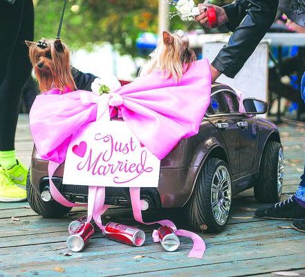 После регистрации владельцам собак вручили свидетельство о браке, а гостей стали угощать тортом с изображением молодоженов. Празднование закончилось концертом. Покинули свадьбу терьеры на маленьком автомобиле Mercedes, который украсили большим розовым бантом и надписью Just married (Молодожены).
