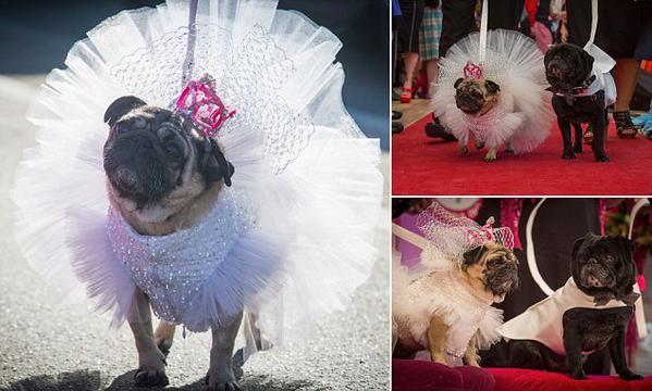 В пригороде австралийского города Мельбурна мопсы Джаспер и Жасмин сочетались «благотворительным» браком, организованным в помощь организации Pug Rescue and Adoption Victoria (фонд по спасению бездомных животных). На церемонию приехали свыше 60 собак и 350 любителей мопсов.