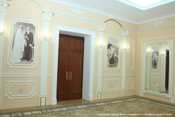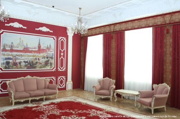 «Грибоедовский» Дворец бракосочетания находится в центре старой Москвы, в прекрасном особняке, построенном в 1909 году архитектором С.В. Воскресенским для купца А.В. Рериха. В 1961 году особняк был передан Городскому отделу ЗАГС исполкома Моссовета для открытия первого в России Дворца бракосочетания. В те времена улица, на которой находится Дворец, называлась улицей Грибоедова. В девяностые годы прошлого века улице вернули старое название – Малый Харитоньевский переулок, но Дворец по-прежнему называют «Грибоедовский».